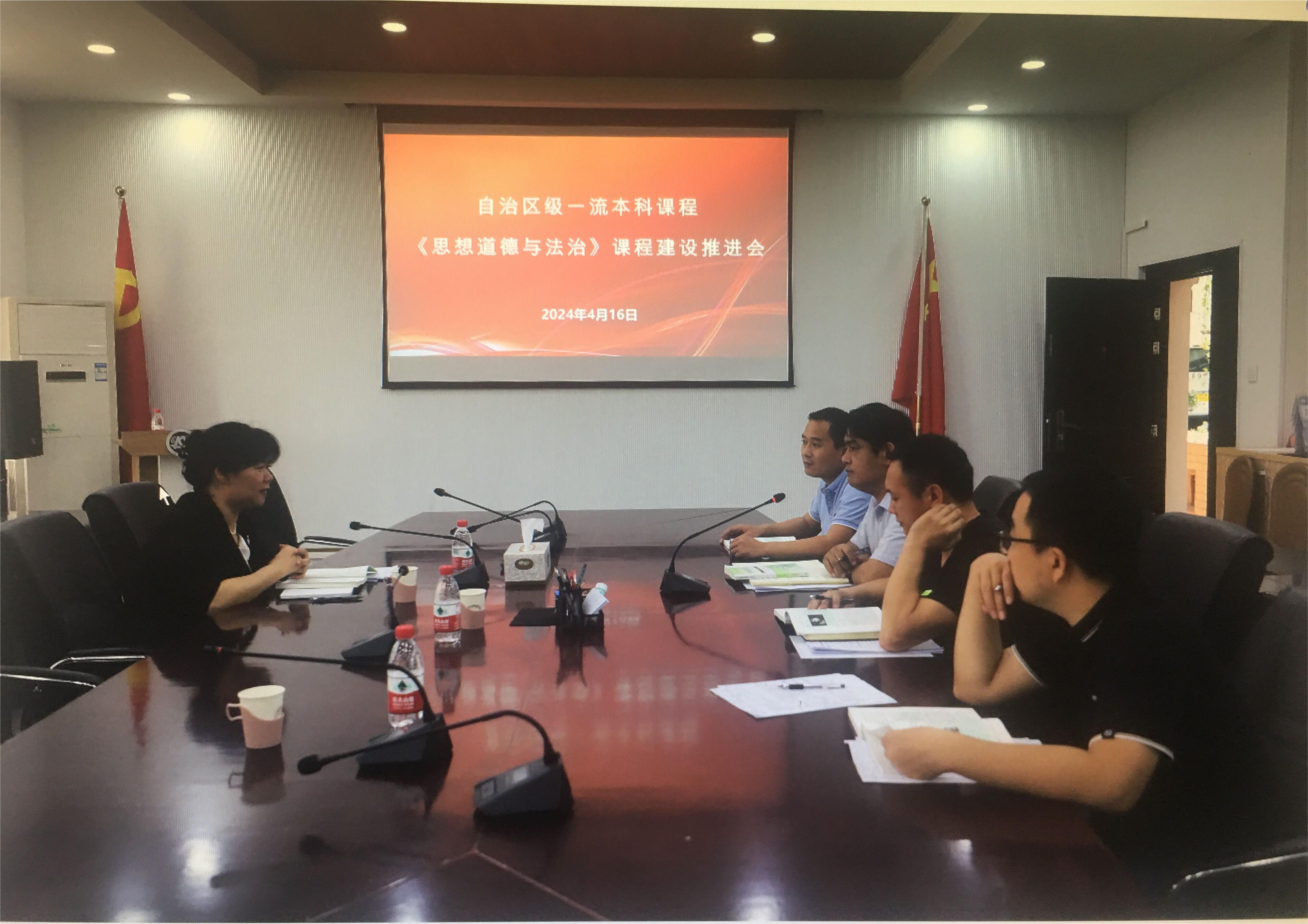 4月16日上午,bibo必博在会议室召开了自治区级一流本科课程《思想道德与法治》课程建设推进会,会议由课程负责人唐海燕经理主持,课程团队成员傅佐东、赵笃华、张建彬和张泽峰参加推进会。